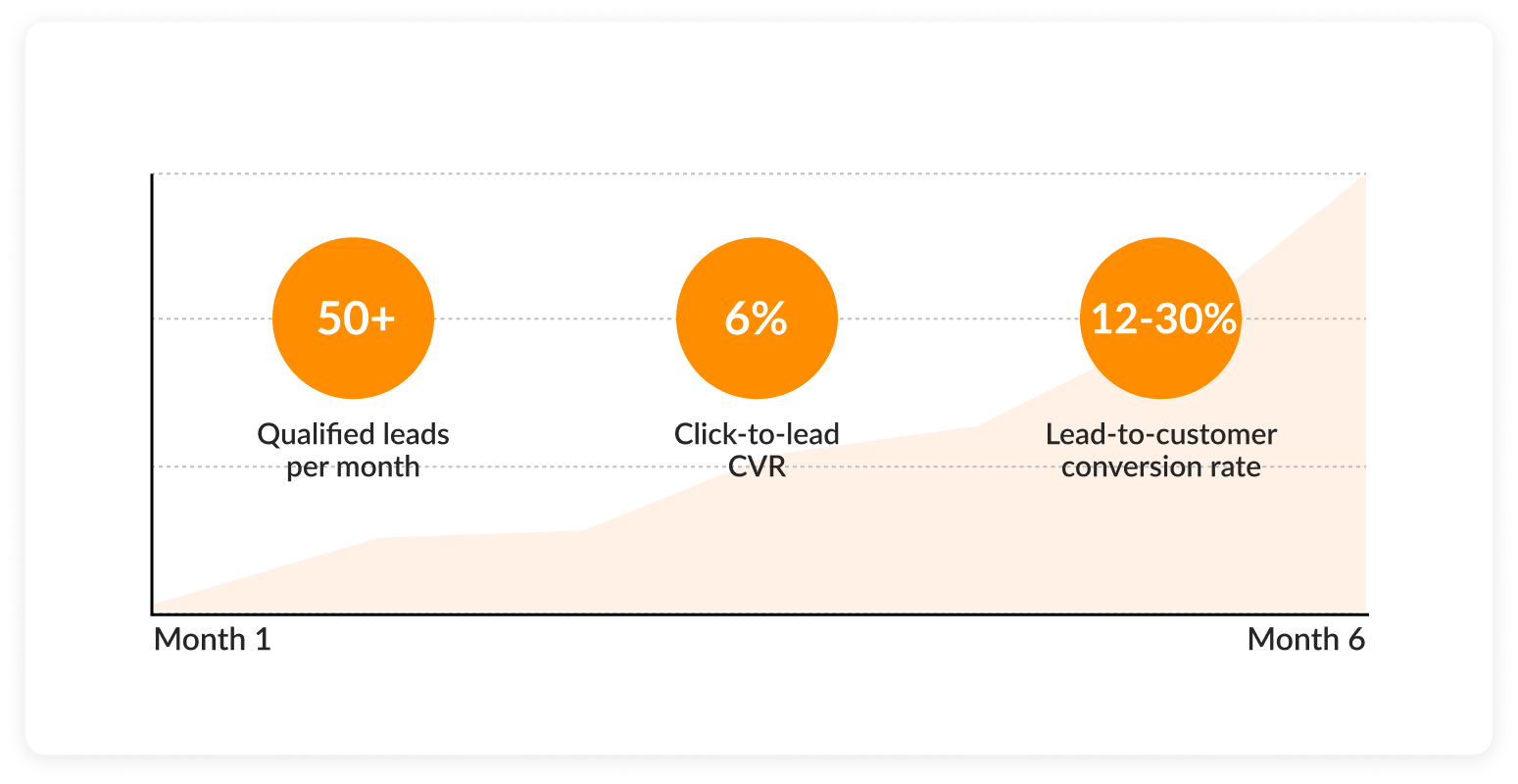 • 50+ qualified leads per month within the first 6 months